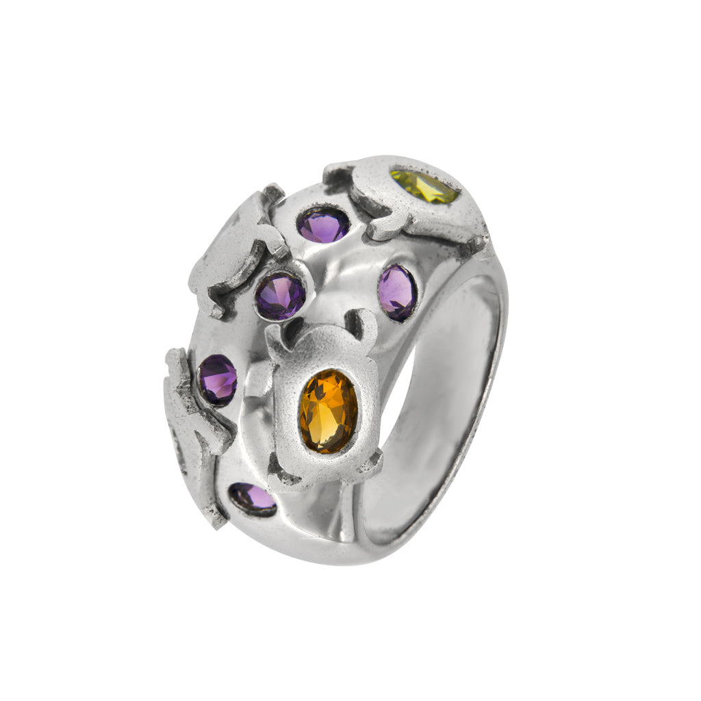 Made of .925 peñoles silver with rhodium coating, decorated with natural stones.