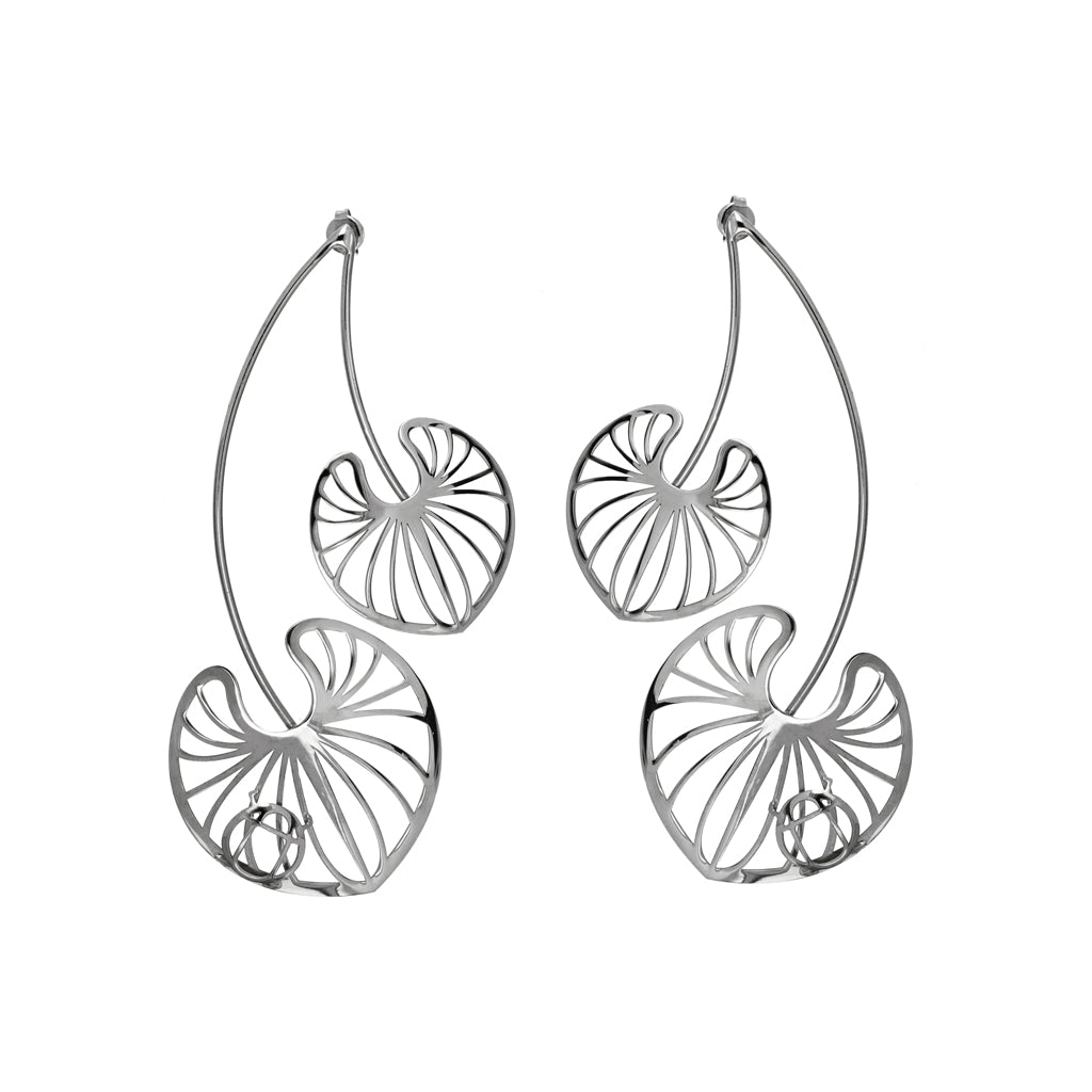 Lotus Collection Earrings. Under the tender care of love, the warrior lies among mystical flowers in a moonlit pool. Made in .925 silver with a rhodium finish.
