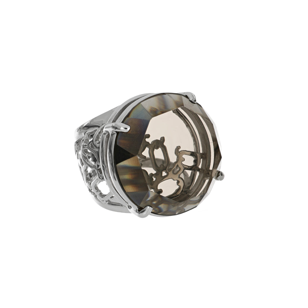 Elaborado en plata peñoles .925,cristal facetado ambar, recubrimiento en rodio.
