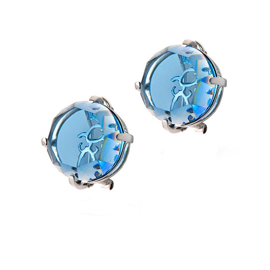 Elaborado en plata peñoles .925,cristal facetado azul, recubrimiento en rodio.