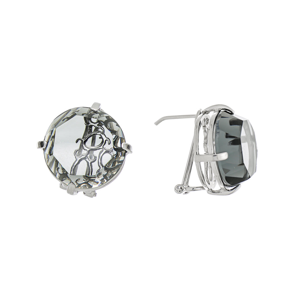 Elaborado en plata peñoles .925,cristal facetado humo, recubrimiento en rodio.
