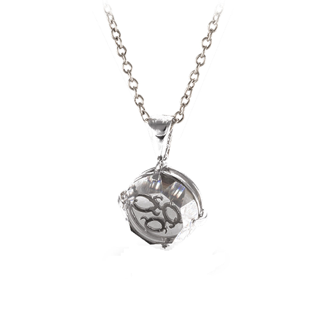 Elaborado en plata, peñoles .925,cristal facetado humo, recubrimiento en rodio.